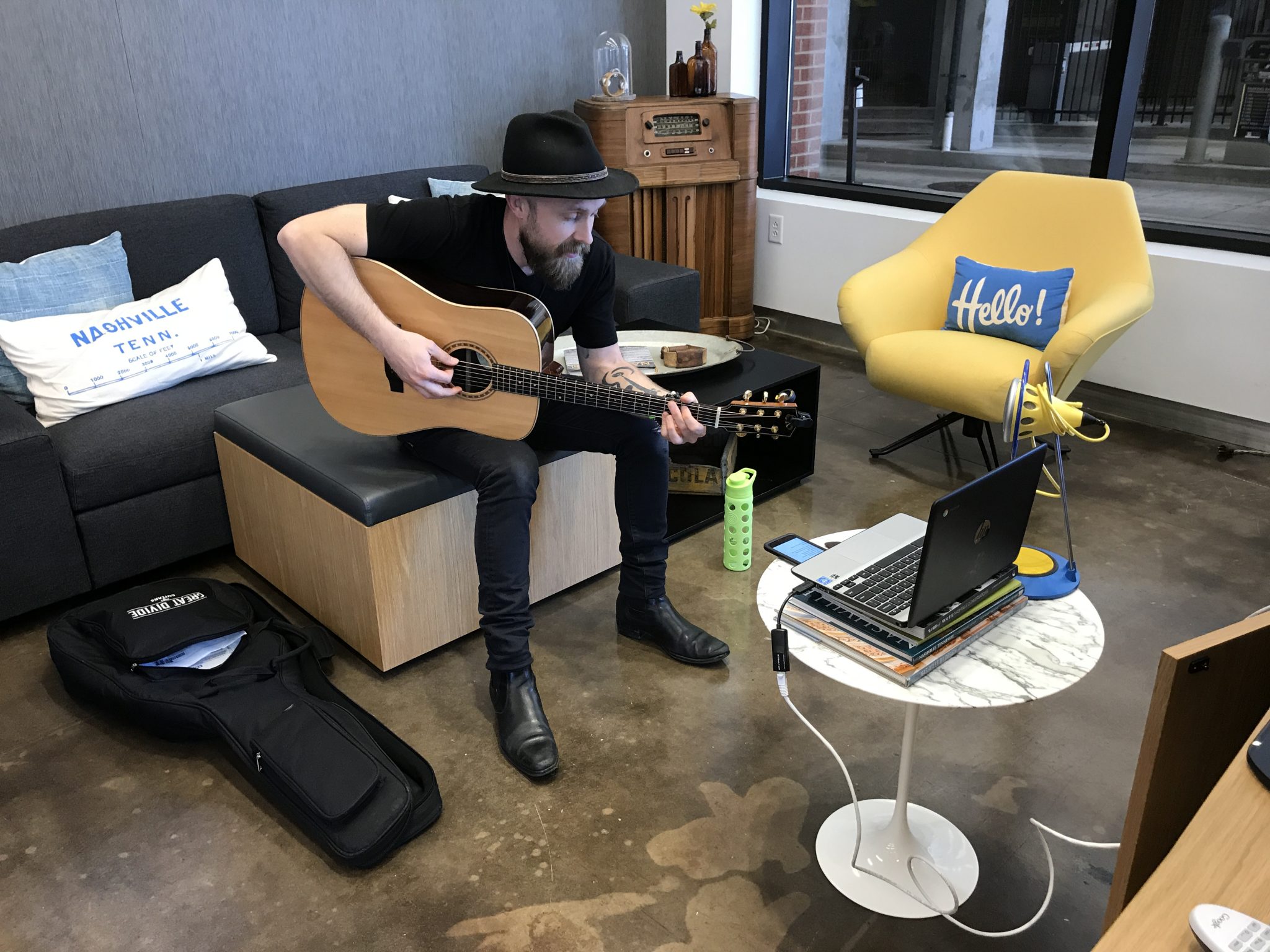 Streaming at the Google Fiber office in Nashville, Volunteer Musician Matt Walberg played for the Teammates For Kids Riley ChildLife Zone Indiana for an hour-long set. Patients and staff called in with questions and requests to make the program even more personal.