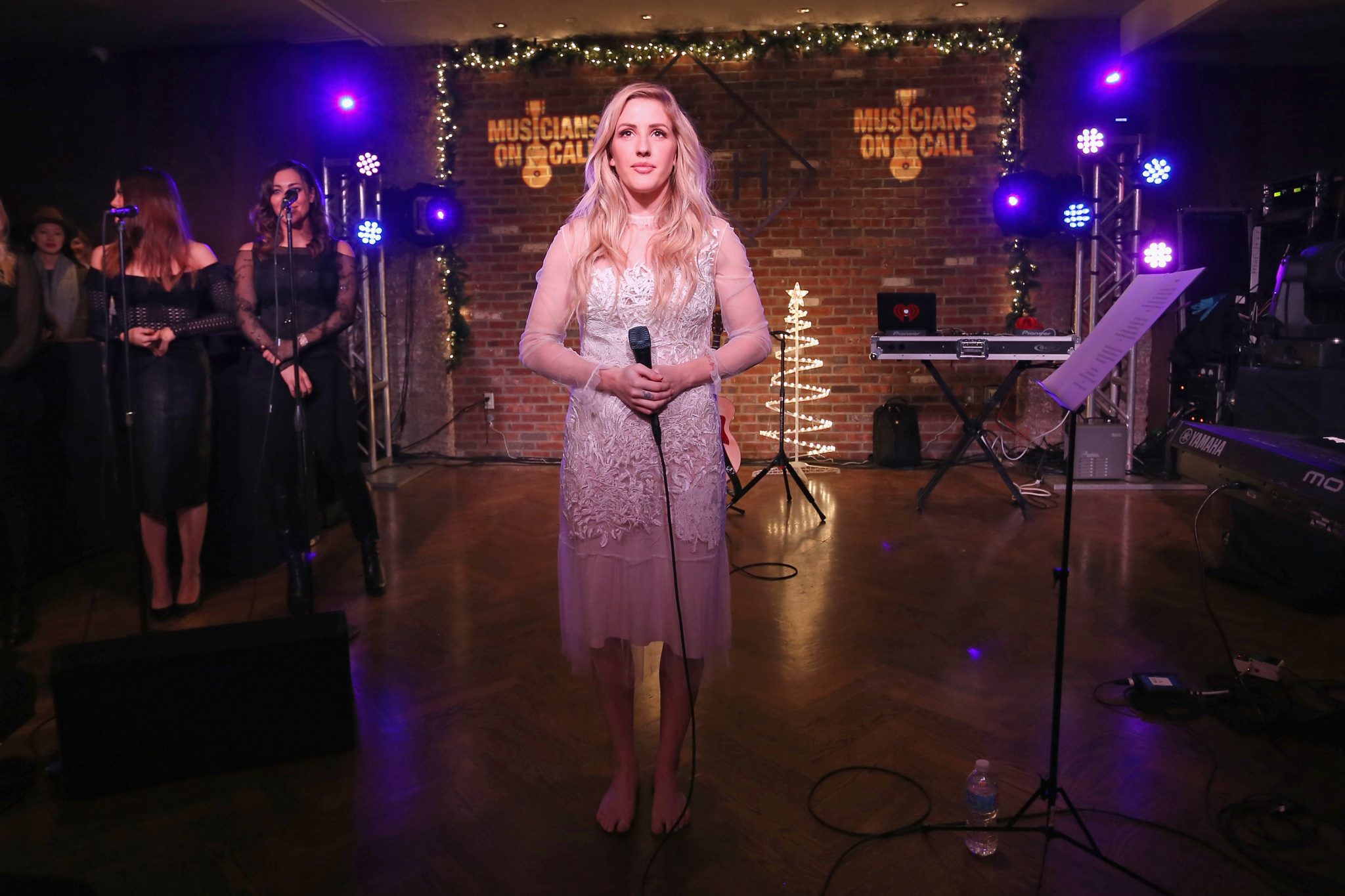 - NEW YORK, NY – DECEMBER 08: Ellie Goulding performs onstage during the Musicians On Call Deck The Halls Holiday Sweater Party at Kola House on December 8, 2016 in New York City. (Photo by Donald Bowers/Getty Images for Pepsi)